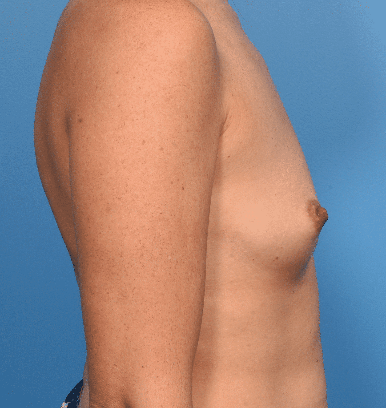 Patient Information:37 yr old patient underwent Submuscular placement of SRM 330cc round smooth silicone non-gummy gel implants. This patient started with minimal breast tissue, lacking the desirable fullness in the lower pole. With implants, the patient now has great fullness in the lower pole as well as a modest amount in the upper pole.