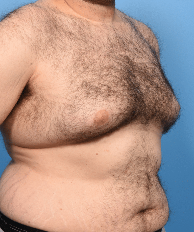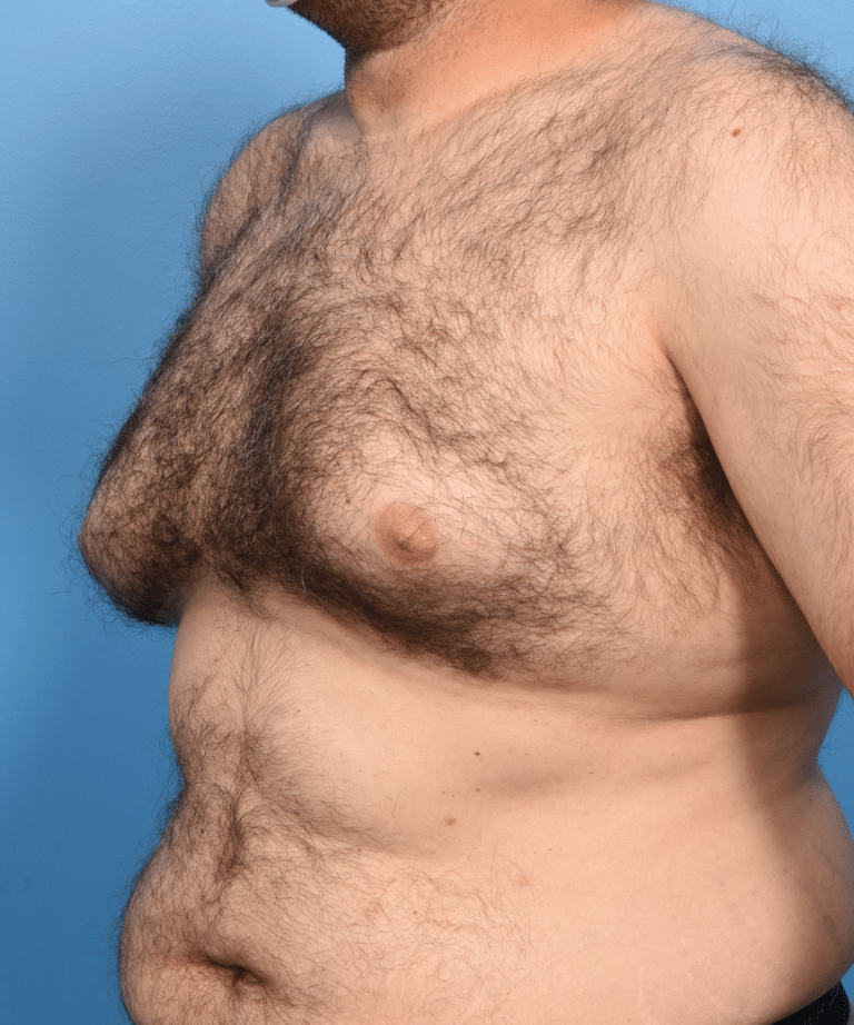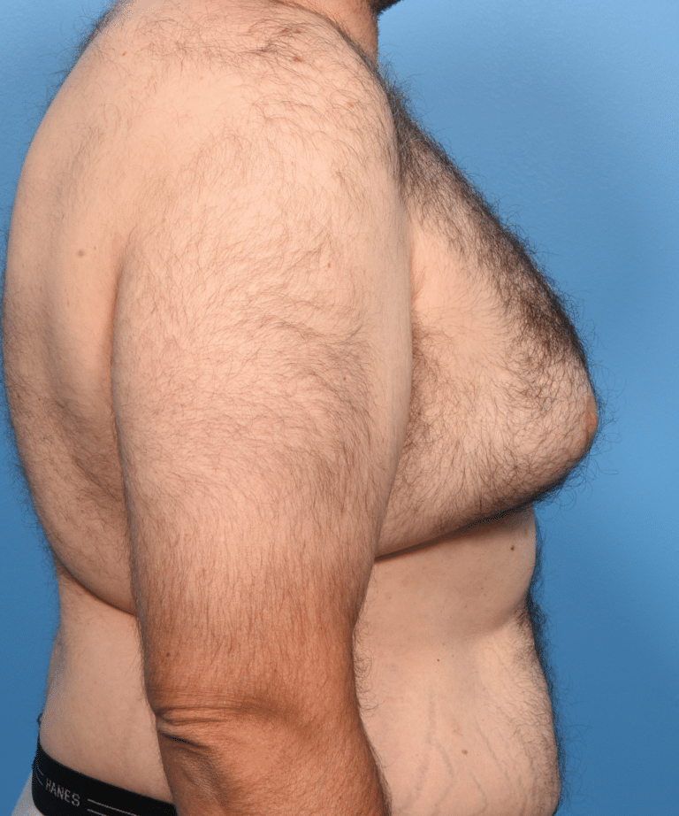 Patient information: 41-year-old with gynecomastia (enlarged male breast), shown after VASER liposuction of the breasts.