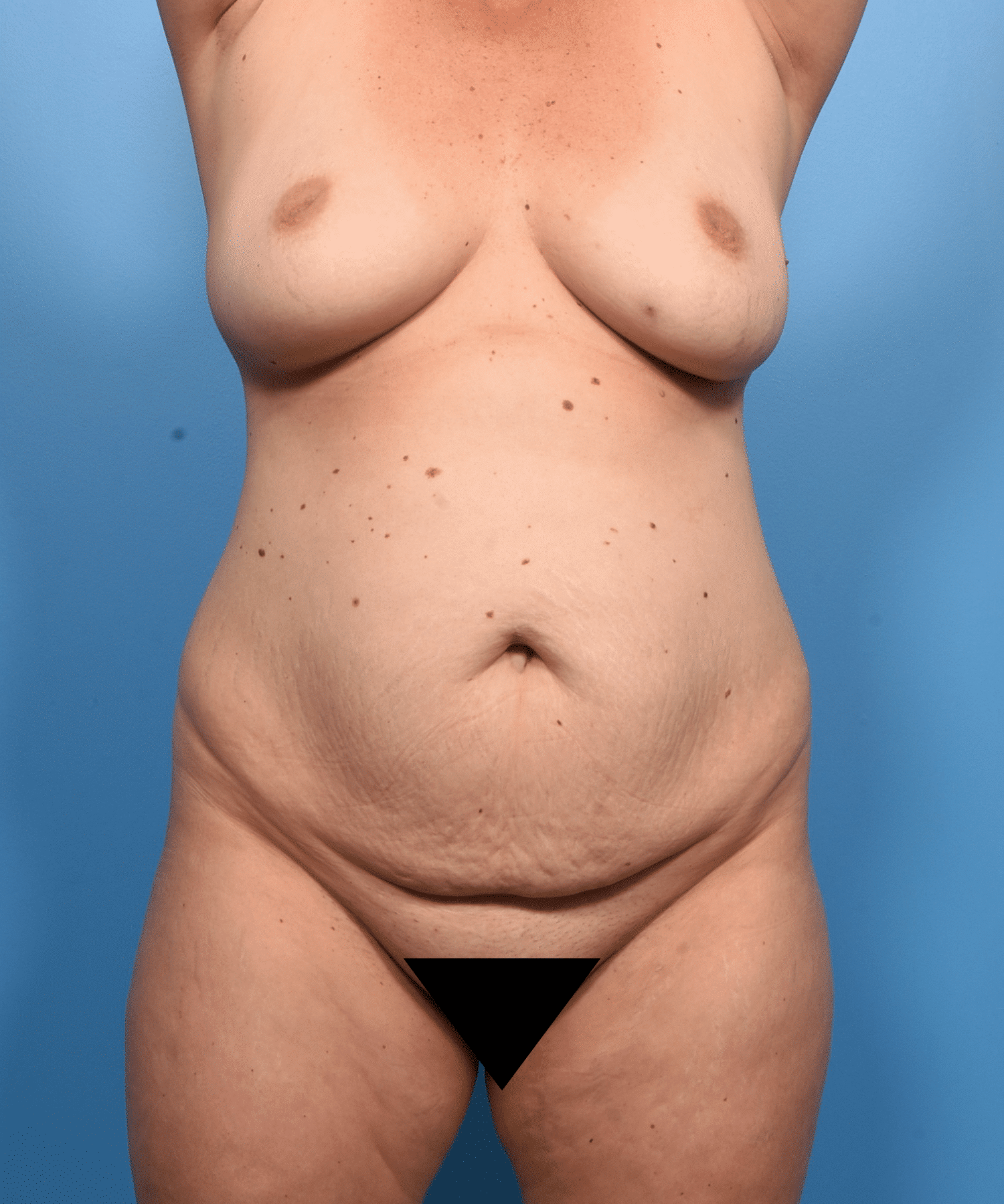 Patient Information: 44 year old female underwent Vaser Liposuction of the flanks and mons and 4D Vaser Lipoabdominoplasty. After undergoing surgery, the patient now has a significantly flatter abdomen and mons. Lipo of the flanks has increased the curvature of the waist.