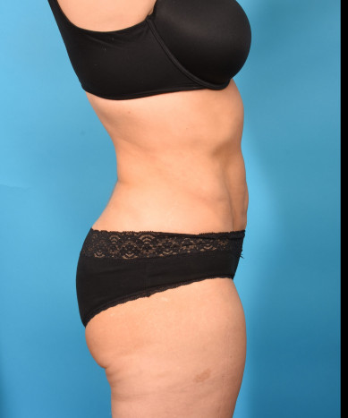 Patient Information: 40 year old female underwent VASER 4D liposuction of the abdomen, flanks and inner thighs. The challenge here was that she had more than the usual amount of abdominal fat to start with. Although she was cautioned preoperatively that she may have loose abdominal skin after deflation of her abdomen, the skin retracted nicely on its own, needing no further intervention. The end result was a very defined, athletic looking abdomen.